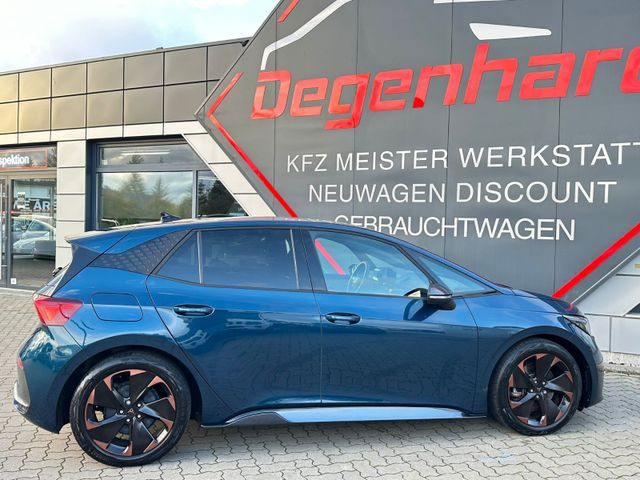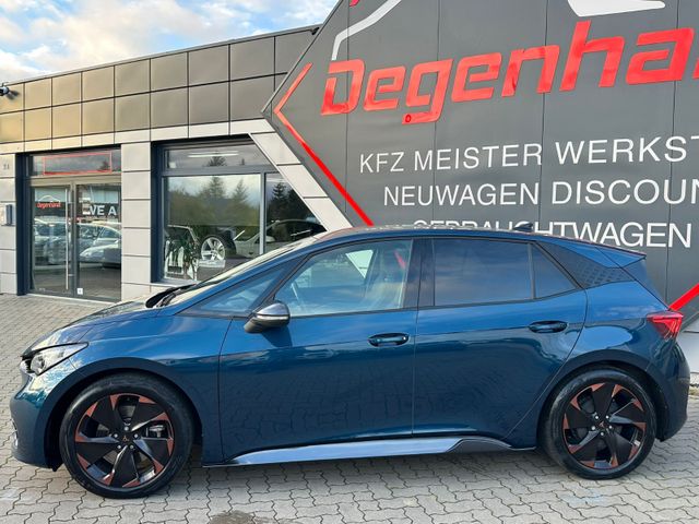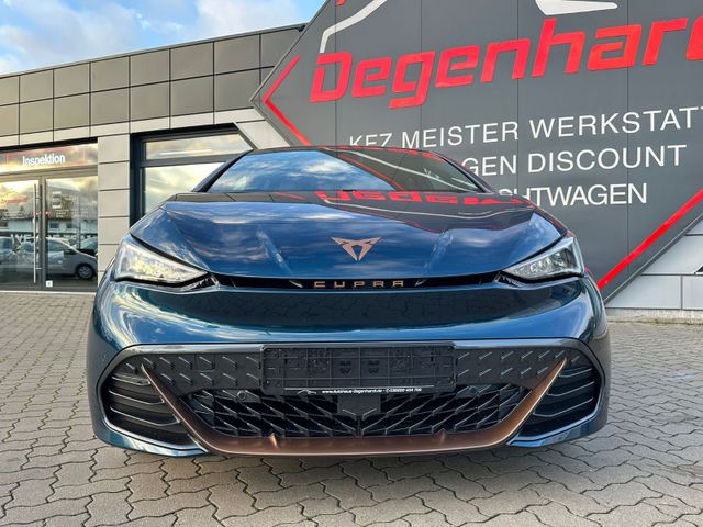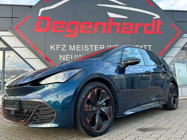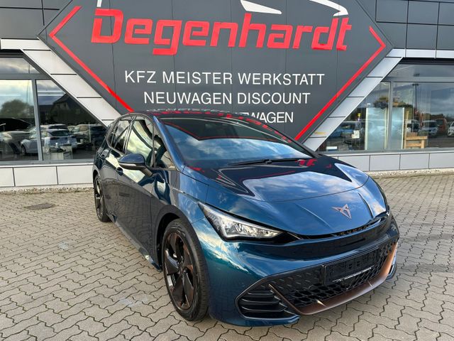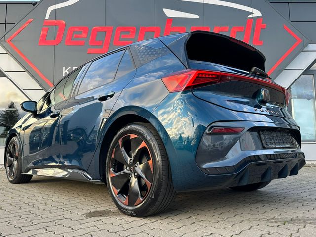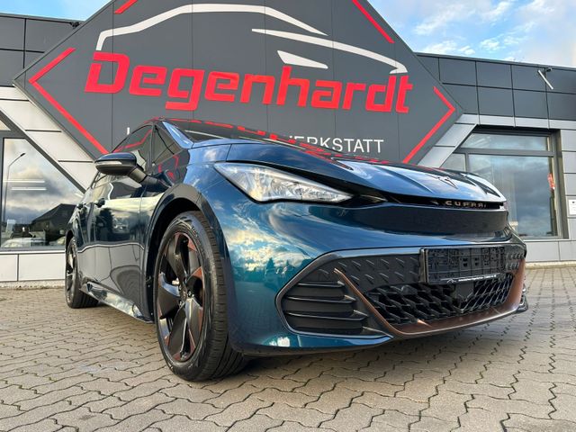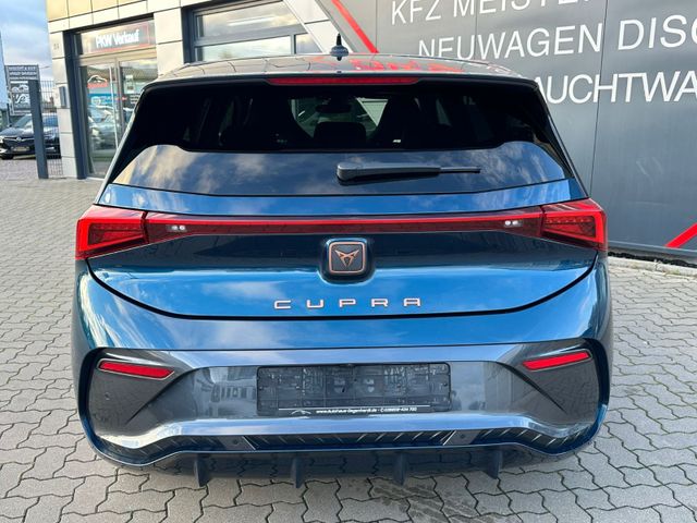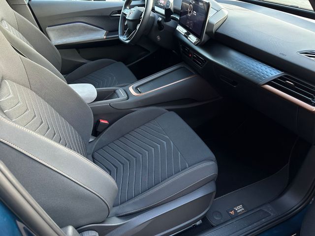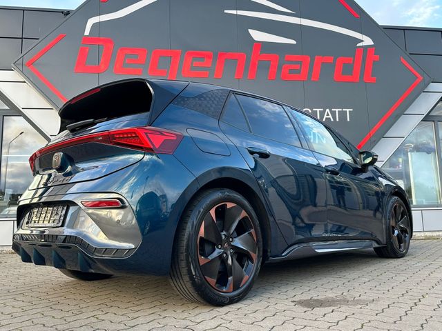 5 Lautsprecher, Airbag Beifahrerseite abschaltbar, Airbag Fahrer-/Beifahrerseite, Akustischer Fußgängerschutz, Außensound (e-sound / AVAS), Ambiente-Beleuchtung LED, Antriebs-Schlupfregelung (ASR), Außenspiegel elektr. verstell-, heiz- und anklappbar mit Spiegelabsenkung und Welcome Light, Blinkleuchten LED in Außenspiegel integriert, Bluetooth-Schnittstelle mit Freisprecheinrichtung integriert, Dachhimmel schwarz, Einparkhilfe vorn und hinten, Elektromotor 170 kW (cont. 70 kW), Fahrassistenz-System: Fahrprofilauswahl (CUPRA Drive Profile), Fensterheber elektrisch vorn + hinten mit Komfortschaltung, Fußraumbeleuchtung LED, Heckleuchten Voll-LED mit Lichtband (Infinite Light), Heckspoiler Wagenfarbe (Dachspoiler), Heizungs-/Klimaanlage: Wärmepumpe, HV-Batterie 62 kWh brutto / 58 kWh netto, Innenspiegel mit Abblendautomatik, Isofix-Aufnahmen für Kindersitz an Beifahrersitz und Rücksitz (inkl. i-Size-Kindersitze), Karosserie: 5-türig, Klimaanlage Climatronic 2-Zonen, Kombiinstrument digital (virtual cockpit), Kopf-Airbag-System, Notrufsystem, Parkbremse elektrisch, Pedale Aluminium-Design, Rücksitzlehne geteilt/klappbar (1/3-2/3), Schnellladevorrichtung (CCS-Ladedose), Seitenairbag, Seitenairbag vorn mitte (Central Airbag), Sitz vorn links höhenverstellbar, Sitzbezug / Polsterung: Stoff, Sonnenblende links mit Spiegel (beleuchtet), Sonnenblende rechts mit Spiegel (beleuchtet), Sport-Schalensitze vorn mit integrierten Kopfstützen, USB-Ladeanschlüsse (2-fach, Typ C) für 2.Sitzreihe, Warnanlage für Sicherheitsgurt-System, Wärmeschutzverglasung