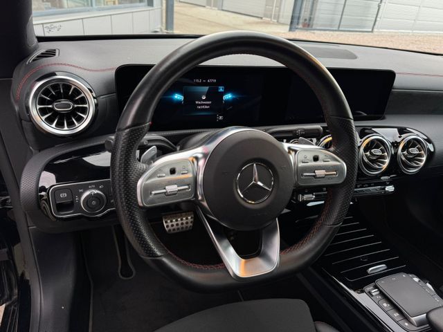 Airbag Beifahrerseite abschaltbar, Airbag Fahrer-/Beifahrerseite, Beckenairbag vorn (Pelvisbag), DAB-Tuner (Radioempfang digital), Design- und Ausstattungslinie AMG Line, Fahrassistenz-System: Agility Select / Dynamic Select (Fahrmodusschalter), Fahrassistenz-System: aktiver Bremsassistent, Fahrassistenz-System: aktiver Spurhalteassistent, Fahrzeug Setup (Onlinedienste / Apps), Fahrzeug-Monitoring (Fahrzeugortungssystem), Fensterheber elektrisch vorn + hinten, Karosserie: 5-türig, Keyless Go Startanlage, Klimaautomatik (Thermatic), Knieairbag Fahrerseite, Kommunikationsmodul (LTE) Vorbereitung Mercedes me connect, Kopf-Airbag-System (Windowbag), Kühlergrill Diamant-Optik, Licht- und Sicht-Paket, Mercedes-Benz Notrufsystem, Motor 1,3 Ltr. - 120 kW KAT, Multimediasystem MBUX (Digitales Multimedia-System), Reifendruck-Kontrollsystem, Schadstoffarm nach Abgasnorm Euro 6d, Seitenairbag (Sidebag) vorn, Seitenschweller Wagenfarbe, Sprachbediensystem Erweiterte Funktionen (MBUX), Start/Stop-Anlage, Steckdose (12V-Anschluß), Touchpad (Mittelkonsole), USB-Anschluss im Fond