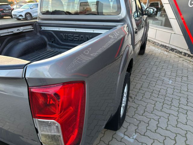 6 Lautsprecher, Airbag Beifahrerseite abschaltbar, Airbag Fahrer-/Beifahrerseite, Audiobedienung am Lenkrad, Audiosystem: Radio mit CD- und MP3-Player, Automatische Fahrlichtschaltung, Außenspiegel elektr. anklappbar, Außenspiegel elektr. verstellbar, Außenspiegel heizbar, Außenspiegel schwarz, Außentemperaturanzeige, Bremsassistent (Nissan Brake-Assist), Coming-Home-Lichtfunktion (Friendly Lightning), Differentialsperre mit begrenztem Schlupf, Fahrassistenz-System: Autonomer Notbrems-Assistent, Fahrassistenz-System: Bergabfahr-Assistent, Fahrassistenz-System: Berganfahr-Assistent, Fahrer-Informations-System (FIS) mit Farbdisplay, Fensterheber elektrisch hinten, Freisprechanlage Bluetooth, Frontscheibe mit Bandfilter oben, Geländeuntersetzung, Gurtstraffer, Heckscheibe heizbar, Isofix-Aufnahmen für Kindersitz, Karosserie/Aufbau: Doppelkabine (Double-Cab), Karosserie/Aufbau: Pick-Up, Knieairbag Fahrerseite, Kopf-Airbag-System, Kopfstützen hinten, Lastenverankerung / Verzurrösen, Lenksäule (Lenkrad) verstellbar, LM-Felgen, Luftdüsen hinten, Motor 2,3 Ltr. - 120 kW dCi Diesel KAT, Radioempfang digital (DAB), Radstand 3150 mm, Reserverad in Fahrbereifung, Schadstoffarm nach Abgasnorm Euro 6d-TEMP, Scheibenwischer mit Intervallschaltung, Schmutzfänger hinten, Schmutzfänger vorn, Seitenairbag, Sitz vorn links höhenverstellbar, Sitzbezug / Polsterung: Stoff, Sitzheizung vorn, Start-Stop-Knopf, Start/Stop-Anlage, Steckdose (12V-Anschluß), Stoßfänger hinten verchromt, Stoßfänger vorn Wagenfarbe, USB-Schnittstelle