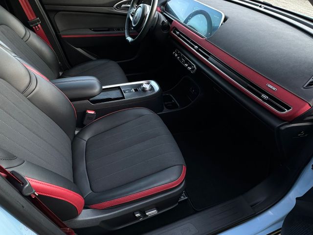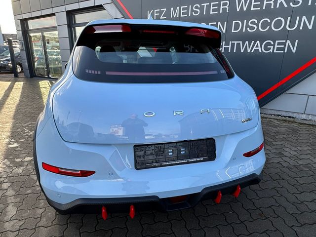 3. Bremsleuchte LED, 6 Lautsprecher, Airbag Beifahrerseite abschaltbar, Airbag Fahrer-/Beifahrerseite, Automatisches Antibeschlag-System, Außenspiegel elektr. verstell-, heiz- und anklappbar, Blinkleuchten LED in Außenspiegel integriert, Bluetooth-Schnittstelle mit Freisprecheinrichtung integriert, Bremsenergierückgewinnung (Rekuperationssystem), Coming-Home-Lichtfunktion, Dual-Bildschirm (10,25" Instrumentenanzeige + 10,25" Infotainment Touchscreen), Einparkhilfe hinten, Einparkhilfe vorn, Elektr. Bremskraftverteilung (EBD), Elektromotor 126 kW (cont. 60 kW), Erste Hilfe-Kasten / Verbandkasten, Exterieurumfänge GT Design, Fahrassistenz-System: 360-Grad-Rundumschutz (Surround-Kamerasystem), Fahrassistenz-System: Abbiege-Assistent (vorn), Fahrassistenz-System: Auffahrwarnsystem (Rear Collision Warning, RCW), Fahrassistenz-System: Ausstiegswarnung (Door Open Warning, DOW), Fahrassistenz-System: Ausweich-Assistent, Fahrassistenz-System: Autobahnassistent (HWA), Fahrassistenz-System: Fahrprofilauswahl (Fahrmodi), Fahrassistenz-System: Intelligente Beschleunigungskontrolle (Launch-Control), Fahrassistenz-System: Parkassistenzsystem (Park Assist), Fahrassistenz-System: Querverkehrs-Assistent Front mit Bremsfunktion (Front Cross Traffic Alert with Brake FCTA-B), Fahrassistenz-System: Querverkehrs-Assistent Heck mit Bremsfunktion (Rear Cross Traffic Alert with Brake, RCTA-B), Fahrassistenz-System: Rückfahr-Assistent, Fahrassistenz-System: Spurverlassenswarnung (LDW), Fahrassistenz-System: Spurwechselassistent (LCA), Fahrassistenz-System: Stauassistent (TJA), Fensterheber elektrisch vorn + hinten, Gepäckraumabdeckung / Rollo, Heckscheibe heizbar, Heizungs-/Klimaanlage: Wärmepumpe, HV-Batterie 63 kWh, Induktionsladeschale für Smartphone, Innenspiegel mit Abblendautomatik, Isofix-Aufnahmen für Kindersitz an Rücksitz, Karosserie: 5-türig, Kindersicherung, Klimaautomatik, Kopfstützen vorn und hinten verstellbar, Kühlergrill, Aktive Luftklappen, Lackierung Solid, Ladekabel mit Typ 2-Stecker (Mode 2), Lenkrad (Kunstleder), Lenkrad heizbar, Lenksäule (Lenkrad) höhen-/längsverstellbar, LM-Felgen, Mittelarmlehne hinten mit Getränkehalter, Navigationssystem, Nebelschlussleuchte, Notrufsystem (eCall), One Pedal Drive (elektronisches Gaspedal), Panorama-Schiebedach elektrisch, Parkbremse elektrisch mit Auto-Hold-Funktion, Radioempfang digital (DAB+), Reifen-Reparaturset, Rücksitzlehne geteilt/klappbar (60:40), Scheibenwaschdüsen heizbar, Scheinwerfer mit Begrüßungsfunktion (Welcome Light), Seitenairbag vorn, Seitenairbag vorn mitte (Center-Airbag), Service-System: Gesichtserkennung, Sitz vorn links elektr. verstellbar (6-fach), Sitz vorn rechts elektr. verstellbar (4-fach), Sitzbelüftung vorn, Sitzbezug / Polsterung: vegane Leder-Optik schwarz / rot, Sitze vorn mit Massagefunktion, Sitzheizung vorn, Sonnenblenden mit Spiegel (beleuchtet), Sprachassistent Hello Ora, Steckdose (12V-Anschluß) vorn, Traktionskontrolle (TCS), Türentriegelung automatisch (bei Unfall), Türgriffe außen Wagenfarbe, USB-Anschlüsse vorn und hinten, Verglasung hinten abgedunkelt (Privacy Glass), Vorhangairbag vorn und hinten, Warnanlage für Sicherheitsgurte