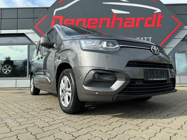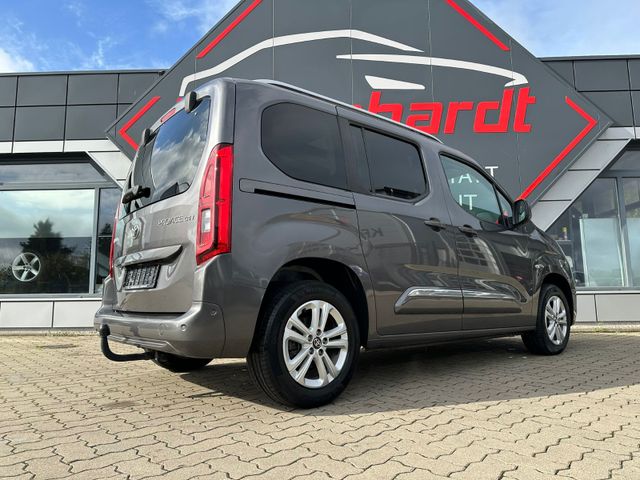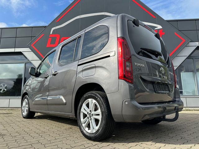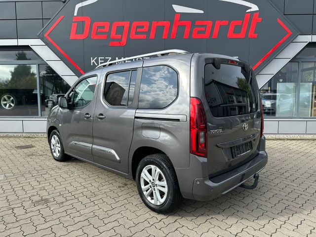 2.Sitzreihe mit Einzelsitzen, Ablagetasche an Vordersitzlehnen, Airbag Fahrer-/Beifahrerseite, Anhänger-Stabilisierungs-Programm (TSC), Audiobedienung am Lenkrad, Audiosystem: Multimedia Toyota Pro Touch, Außenspiegel elektr. anklappbar, Außenspiegel elektr. verstell- und heizbar, Außenspiegel lackiert, Beifahrereinzelsitz, Beifahrersitz klappbar (Flat-Floor), Bremsassistent, Dachreling, Einparkhilfe vorn und hinten, Elektr. Bremskraftverteilung, Fahrassistenz-System: Berganfahrkontrolle (HAC), Fahrassistenz-System: Fernlichtassistent (Abblendautomatik Fahrlicht, AHB), Fensterheber hinten elektr. mit Einklemmschutz, Fensterheber vorn elektr. mit Einklemmschutz, Freisprechanlage mit Audiostummschaltung, Gepäckraum-Abtrennung (Netz), Gepäckraumabdeckung / Rollo, Heckklappe mit separat zu öffnendem Fenster, Heckklappe mit Verglasung, Innenspiegel mit Abblendautomatik, Isofix-Kindersitz-System, Karosserie/Aufbau: Kombi, Kindersicherung elektr. betätigt, Klapptische in Fahrer- und Beifahrersitzlehne integriert, Klimaautomatik 2-Zonen, Komfortsitze, Kopf-Airbag-System, Motor 1,2 Ltr. - 81 kW 12V Turbo KAT, Multi-Funktions-Display (TFT), Otto-Partikelfilter (OPF), Parkbremse elektrisch (EPB), Radstand 2785 mm, Reifen-Reparaturkit, Reifendruck-Kontrollsystem, Rückfahrkamera, Schadstoffarm nach Abgasnorm Euro 6d-TEMP, Schiebetür links mit Verglasung, Schiebetür rechts mit Verglasung, Seitenairbag hinten, Seitenairbag vorn, Seitenschutzleisten Wagenfarbe, Sitz vorn links höhenverstellbar, Sitzausstattung: 5-Sitzer, Sonnenschutzrollo an Seitenscheiben hinten, Stau-/Ablagefach über Fahrer- und Beifahrersitz (Dachhimmel), Steckdose 230V, Stop&Go-System (TSGS), Stoßfänger Wagenfarbe, Toyota Safety Sense, Türgriffe außen Wagenfarbe, Universal-Schnittstelle (USB-/ iPod-/ AUX-Anschluss), Verglasung 2./3.Reihe, Verglasung getönt, Verglasung hinten abgedunkelt, Warnanlage für Sicherheitsgurte hinten, Warnanlage für Sicherheitsgurte vorn