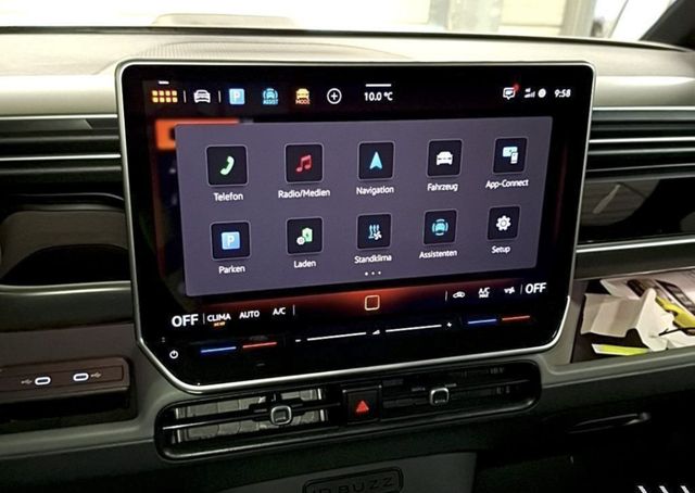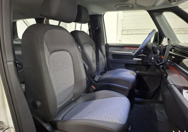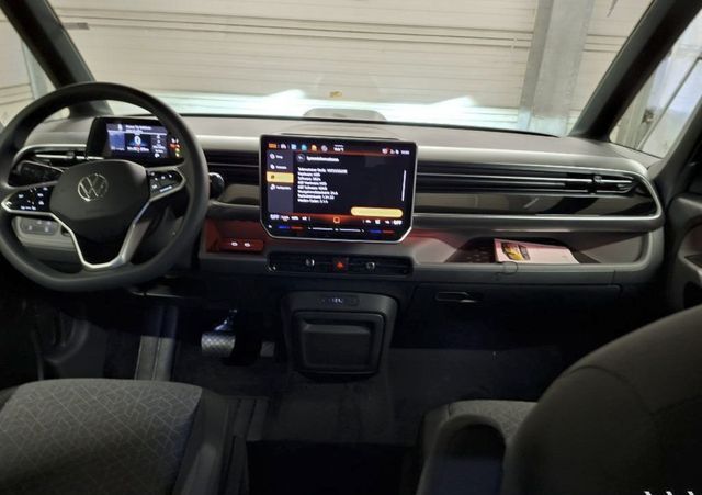 Airbag Fahrer-/Beifahrerseite, Beifahrerairbag abschaltbar, Akustischer Fußgängerschutz, Außensound (e-sound), Ambiente-Beleuchtung (10 Farben), Antennen-Diversity, Audiosystem Ready 2 Discover (Touchscreen-Farbdisplay 12,9 Zoll), Audiosystem: Außenspiegel elektr. verstell-, heiz- und anklappbar mit Spiegelabsenkung, Außenspiegel konvex, links und rechts, Außenspiegel schwarz unlackiert und Türgriffe außen in Wagenfarbe, Bidirektionales Laden (DC), Bodenbelag: Teppich verstärkt, Bordwerkzeug und Reifen-Reparaturkit, Bremsbelagverschleissanzeige, DC / DC Wandler 3 kW, Elektromotor 210 kW (cont. 89 kW), Fahrassistenz-System: Ablenkungs- und Müdigkeitserkennung, Fahrassistenz-System: Ausweich-Assistent und Abbiege-Assistent, Fahrassistenz-System: Autom. Distanzregelung (ACC inkl. Stop&Go-Funktion), Fahrassistenz-System: Einparkhilfe vorn und hinten, Fahrassistenz-System: Notbrems-Assistent (Front Assist) inkl. Fußgänger- und Fahrraderkennung, Fahrassistenz-System: Spurhalteassistent (Lane Assist), Fahrassistenz-System: Spurwechselassistent (Side Assist) mit Auspark-Assistent und Ausstiegswarnung, Fahrassistenz-System: Verkehrszeichenerkennung, Fenster im Lade-/FG-Raum: - feststehend, vorn links, Fenster im Lade-/FG-Raum: - feststehend, vorn rechts, Frontscheibe Verbundglas getönt, Funkschlüssel (2), Fußraumbeleuchtung vorn und hinten, Getriebe für Elektrofahrzeug, Heckklappe mit Verglasung, Heckleuchten LED, Heckscheibe, Heckscheibenwischer mit Intervallschaltung, HV-Batterie 79 kWh netto, Innenausstattung: Bedienelemente, Lenkrad und Einfassung Instrumente schwarz, Innenleuchten im Lade-/FG-Raum: LED (Gepäckraum), Innenraumfilter: Aktiv Kombifilter, Innenspiegel abblendbar, Insassen-Schutzsystem proaktiv, Intelligent Speed Assist inkl. Geschwindigkeitsbegrenzer, Isofix-Aufnahmen für Kindersitz an Rücksitz, Karosserie/Aufbau: Bus, Keyless-Start ohne Safesicherung, Klimaautomatik Climatronic (2-Zonen, Standklimatisierung), Ladekabel mit Typ 2-Stecker (16 A, Mode 3), Lautsprecher (9), Lenkrad mit Multifunktion, Leuchtweitenregelung, Linkslenker, Mobile Online Dienste App-Connect inkl. App-Connect Wireless (Apple CarPlay, Android Auto), Mobiltelefon Schnittstelle Bluetooth, Mobiltelefon Schnittstelle mit kabelloser Ladefunktion, Multifunktionskamera / Frontkamera, Multimedia-Schnittstelle 2 x USB (Typ C) und 1 x USB-Ladeanschluß (Typ C) vorn, Nichtraucher-Paket, Notrufsystem, Radioempfang digital (DAB+), Radstand 2989 mm, Radstand kurz, Radvollabdeckungen schwarz / silber, Reifenkontroll-Anzeige, Scheibenwischer mit Intervallschaltung, Scheinwerfer LED, Schiebetür Lade-/Fahrgastraum links, Schiebetür Lade-/Fahrgastraum rechts, Schnellladevorrichtung (CCS-Ladedose), Schriftzug / Plakette D-Säule, Seitenairbag, Kopfairbag und Center-Airbag vorn, Service-System: Intelligente Fahrzeugvernetzung (Car2X), Servolenkung elektro-mechanisch, geschwindigkeitsabhängig, Sicherheitsgurte vorn mit Gurtstraffer und Endbeschlagstraffer, höhenverstellbar, Sitzausstattung: 5-Sitzer, Sitzbezug / Polsterung: Stoff, Sitze im Fahrerhaus: Beifahrereinzelsitz, Sitze im Fahrerhaus: Fahrer- und Beifahrersitz höhenverstellbar, Sitze im Fahrerhaus: Fahrer- und Beifahrersitz mit Armlehnen innen, Sitze im Lade-/FG-Raum: 1.Reihe, 3er-Sitzbank, geteilt/klappbar, Sonnenblenden mit Spiegel (beleuchtet), LM-Felgen, Steckdose (12V-Anschluß) im Laderaum, Stoßfänger in Wagenfarbe, Umfeldbeleuchtung seitlich mit Projektionsfunktion, Verbandkasten und Warndreieck, Vorbereitung für Alkohol-Wegfahrsperre (Alcolock), Vorbereitung Onlinedienste We Connect (Plus) oder VW Connect (Plus) und Online-Update-Fähigkeit, Warnanlage für Sicherheitsgurte vorn und hinten, Wärmeschutzverglasung seitlich / hinten, Zul. Gesamtgewicht 3,00 t